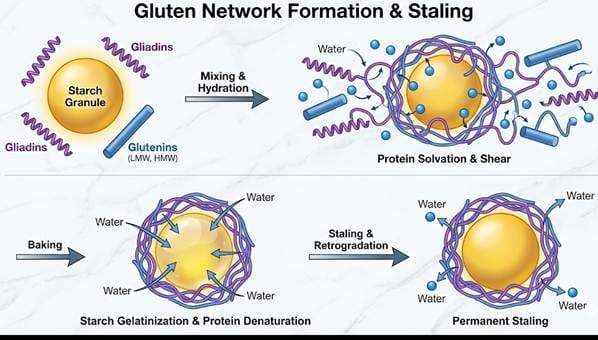 Unlike gums that act primarily by trapping water, enzymes could permanently alter the fundamental architecture of the gluten and starch network.