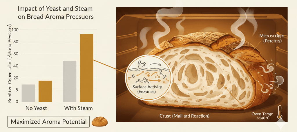 The source text highlights a crucial experiment: baking bread with and without yeast. The unyeasted bread “paled in comparison” regarding aroma. This suggests that the Maillard reaction alone is insufficient to produce the full sensory experience of bread; it requires the biological precursors provided by fermentation and preserved by steam.