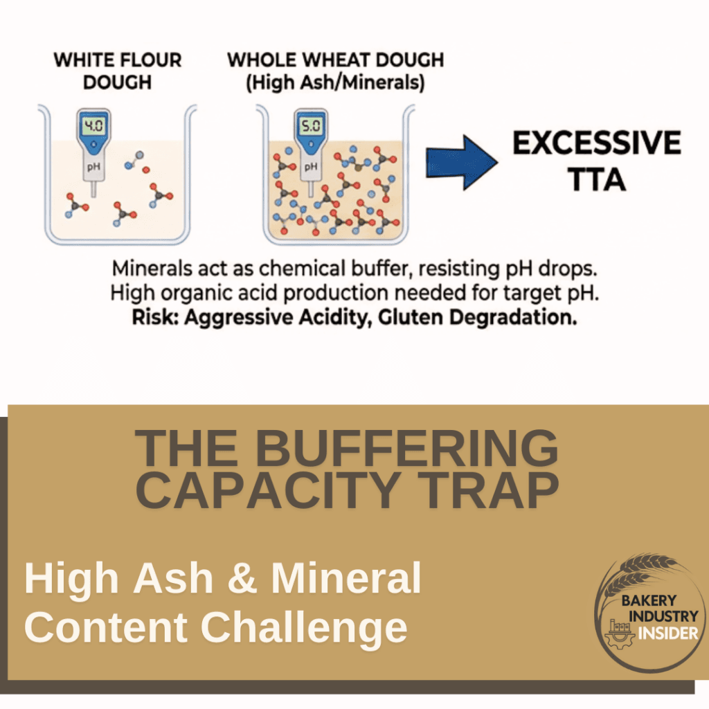 - Dissociation of pH and TTA: In a whole wheat medium, the mass resists pH drops. To achieve the same pH reduction (e.g., from 5.0 to 4.0) observed in white flour, bacteria must produce a significantly higher volume of organic acids.