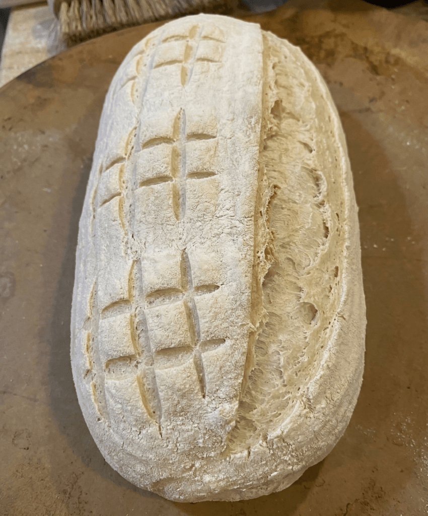 This is what allows the loaf to reach its full volume. Without adequate early moisture, the crust forms too soon, the dough cannot expand, and the result is a dense, cracked product.